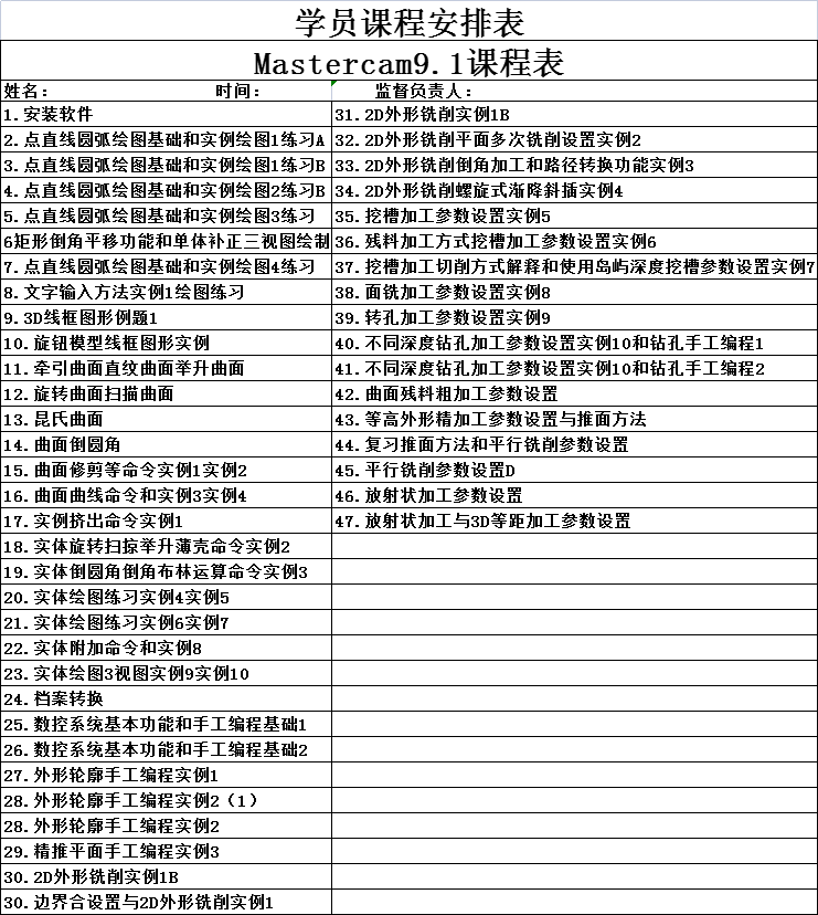 Mastercam 軟件應(yīng)用,2D、3D畫圖,治具、夾具設(shè)計(jì),2D刀路及鉆孔類加工,3D刀路,各類零件、產(chǎn)品的 Mastercam 編程加工經(jīng)驗(yàn)方法,特殊加工,各類成型刀的加工方法,產(chǎn)品零件類工廠CNC編程實(shí)訓(xùn) |